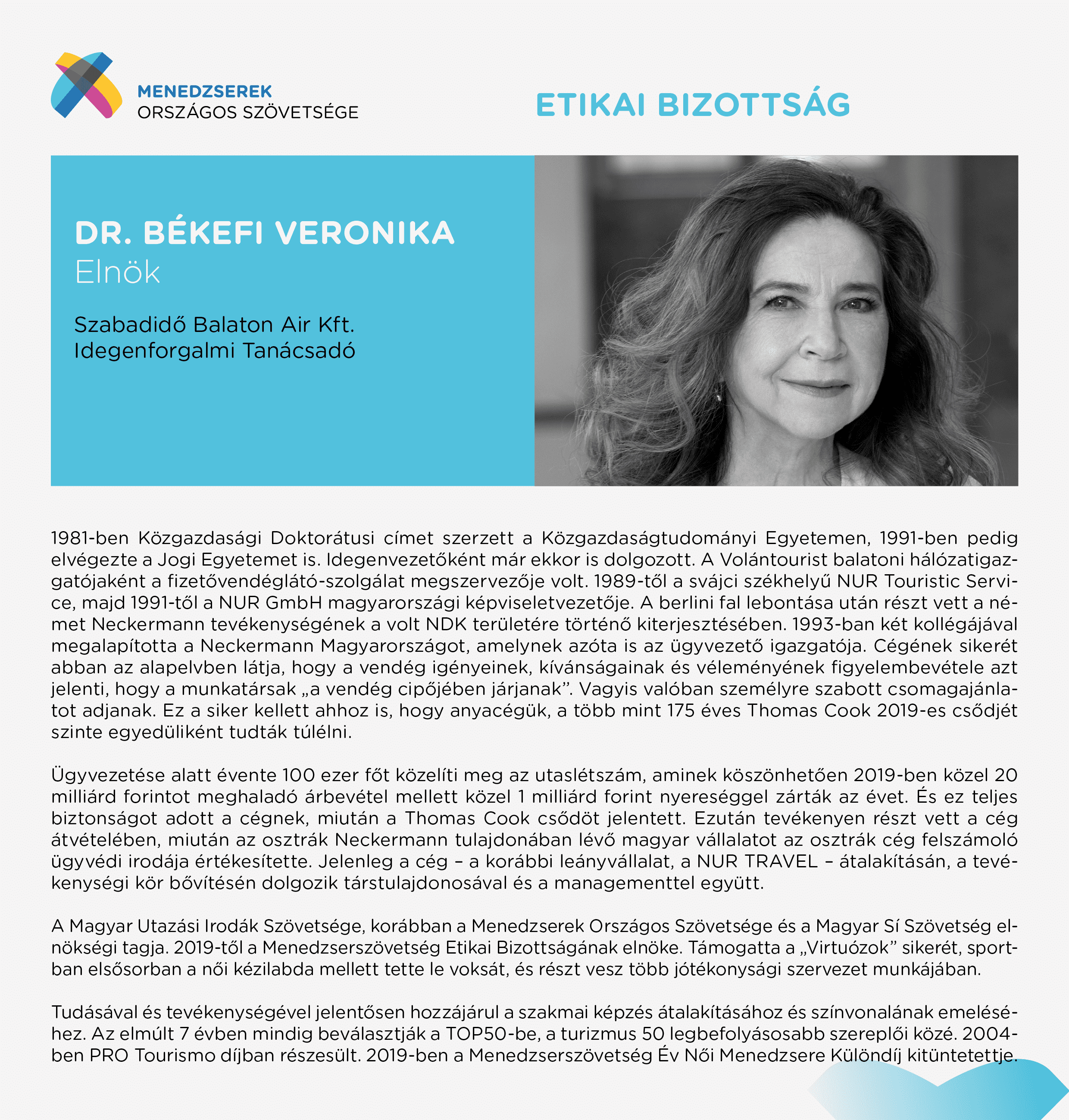 Dr. Békefi Veronika - Elnök, Szabadidő Balaton Air Kft., idegenforgalmi tanácsadó